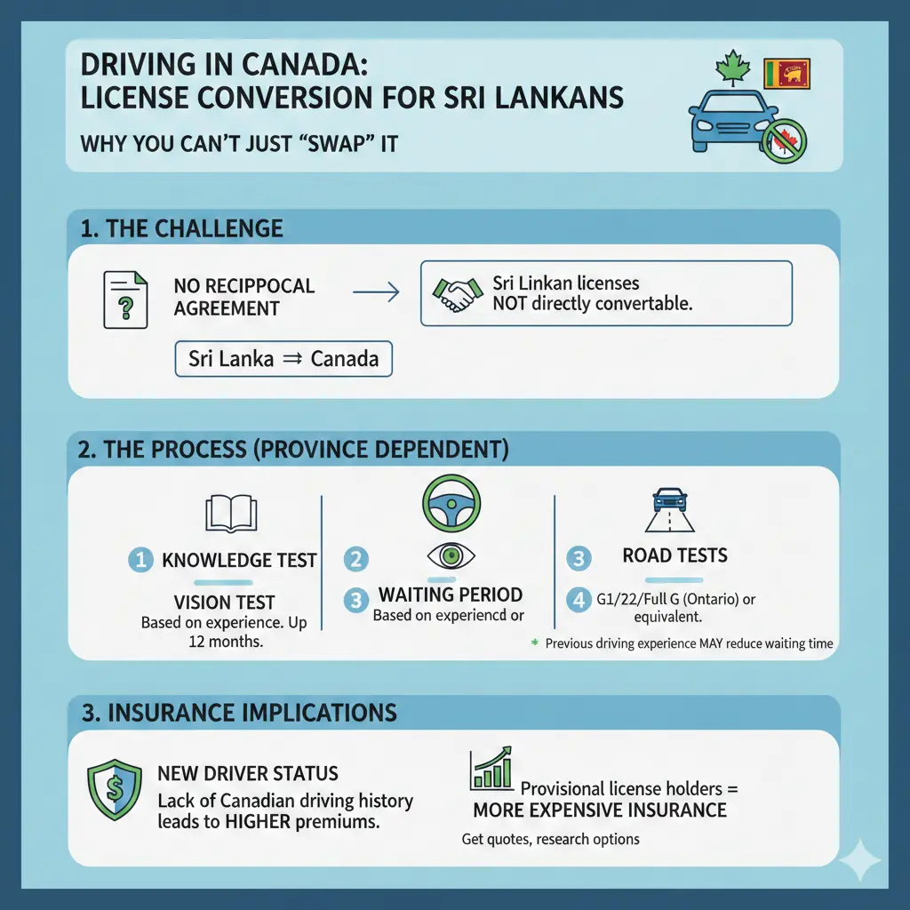If you arrive in Canada with just your plastic Sri Lankan license, the system often only recognizes you as a new driver. This forces you into a "Graduated Licensing System" (like Ontario's G1 to G2 to G) which involves mandatory waiting periods of up to a year between tests.