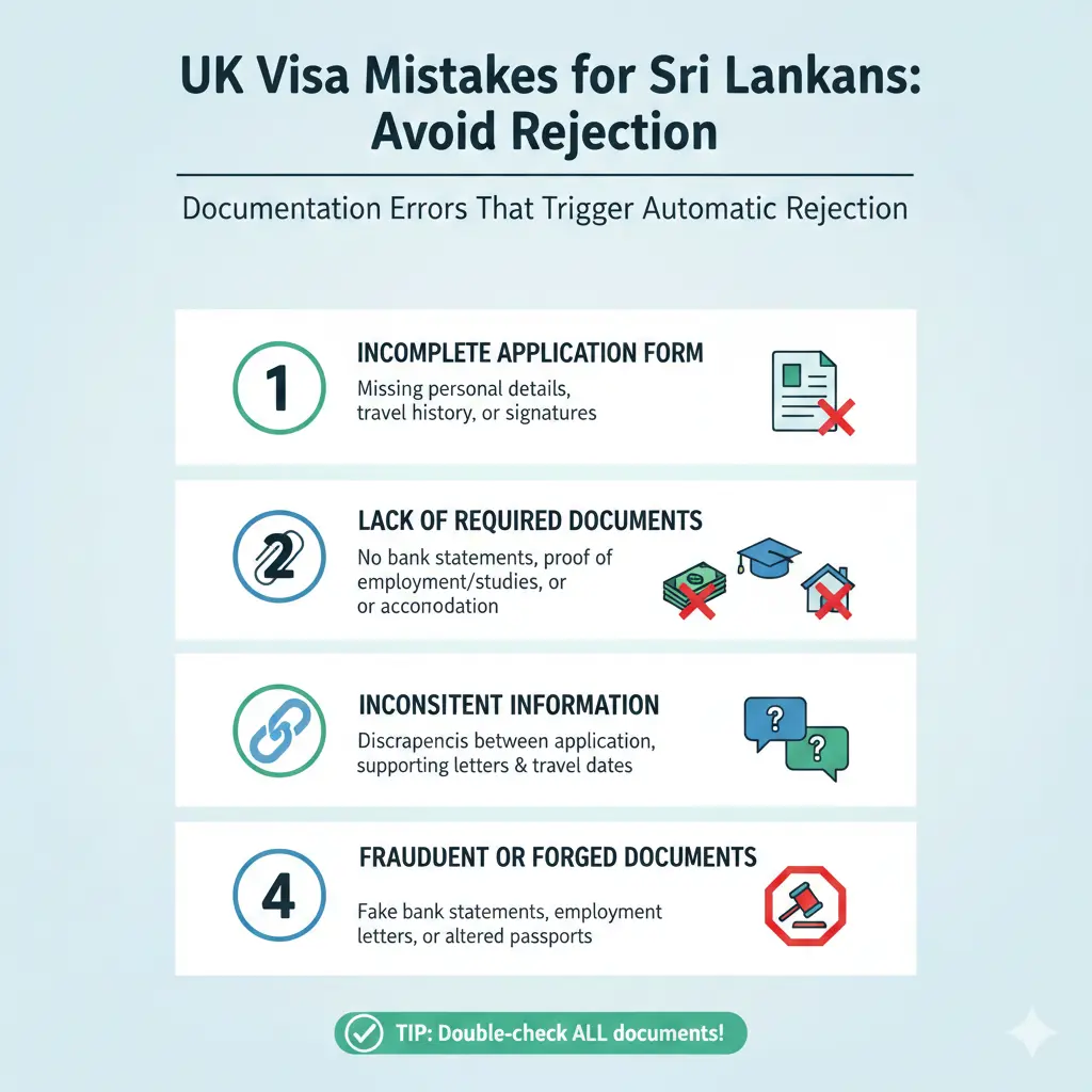 Hey, listen, I’ve seen so many Sri Lankan friends get their UK visa dreams crushed just because of sloppy documents. You know, incomplete or messy paperwork tops the list for automatic rejections from UKVI—it’s like they hit the refuse button without a second thought.[2][1] I think it’s the number one trap because officers process hundreds of apps daily; they won’t chase you for missing bits.