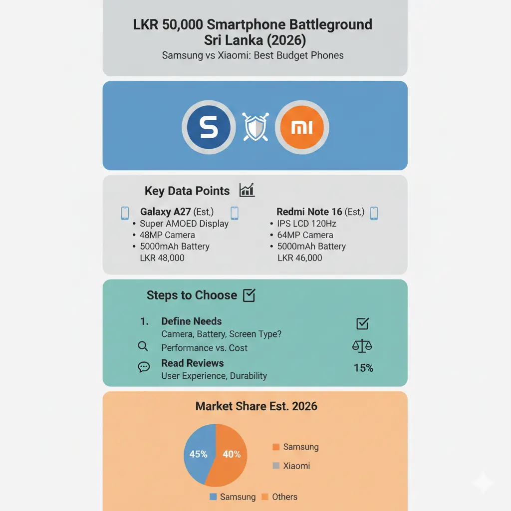In 2026, the smartphone market under LKR 50,000 is where the real fight happens for most Sri Lankan buyers. This price point offers the best mix of modern features and affordability. Two giants, Samsung and Xiaomi, dominate this space. They use very different strategies to win your trust and your money.