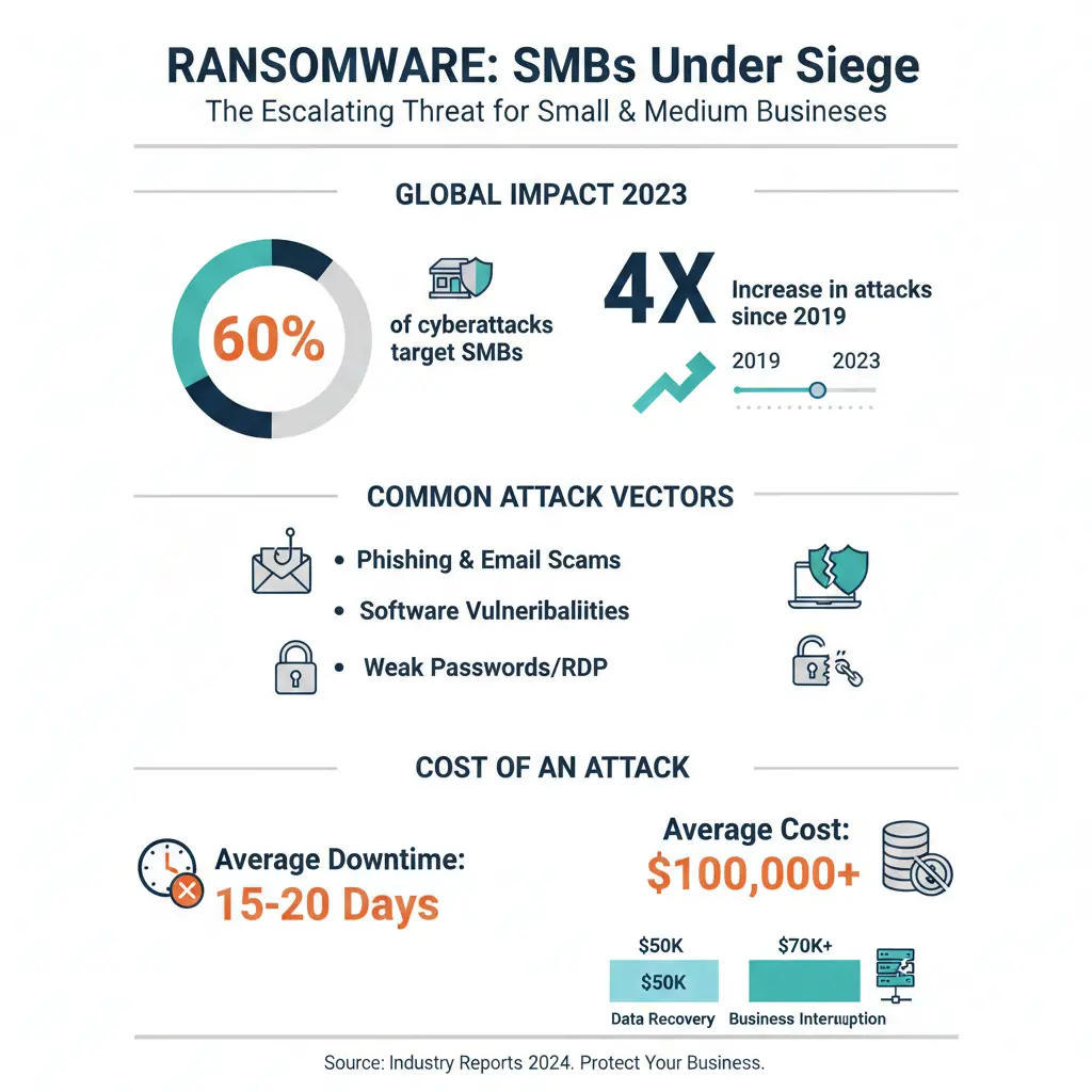 The Rising Threat of Ransomware for Small and Medium Businesses Ransomware has shifted from a problem mainly affecting large corporations to a serious daily risk for small and medium businesses across every industry. Attackers now use automated tools, phishing kits and “Ransomware‑as‑a‑Service”...