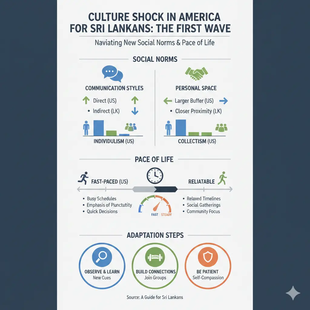Many Sri Lankans find the shift from a collectivist, community-centered society to America's highly individualistic culture to be the most significant and challenging adjustment. This impacts everything from friendships to workplace expectations.