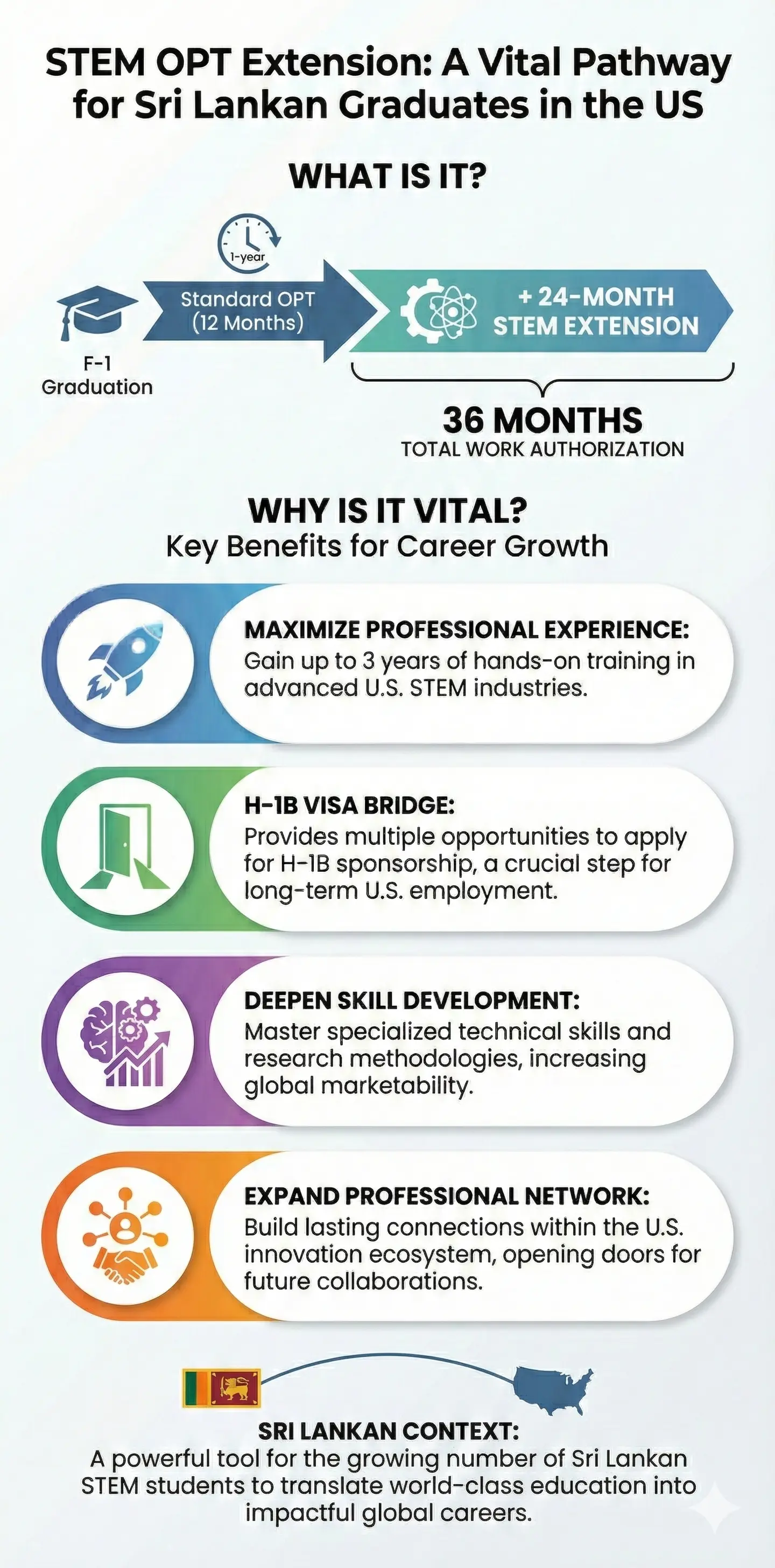 At a Glance — STEM OPT Guide for Sri Lankan Graduates in the US (click to enlarge)