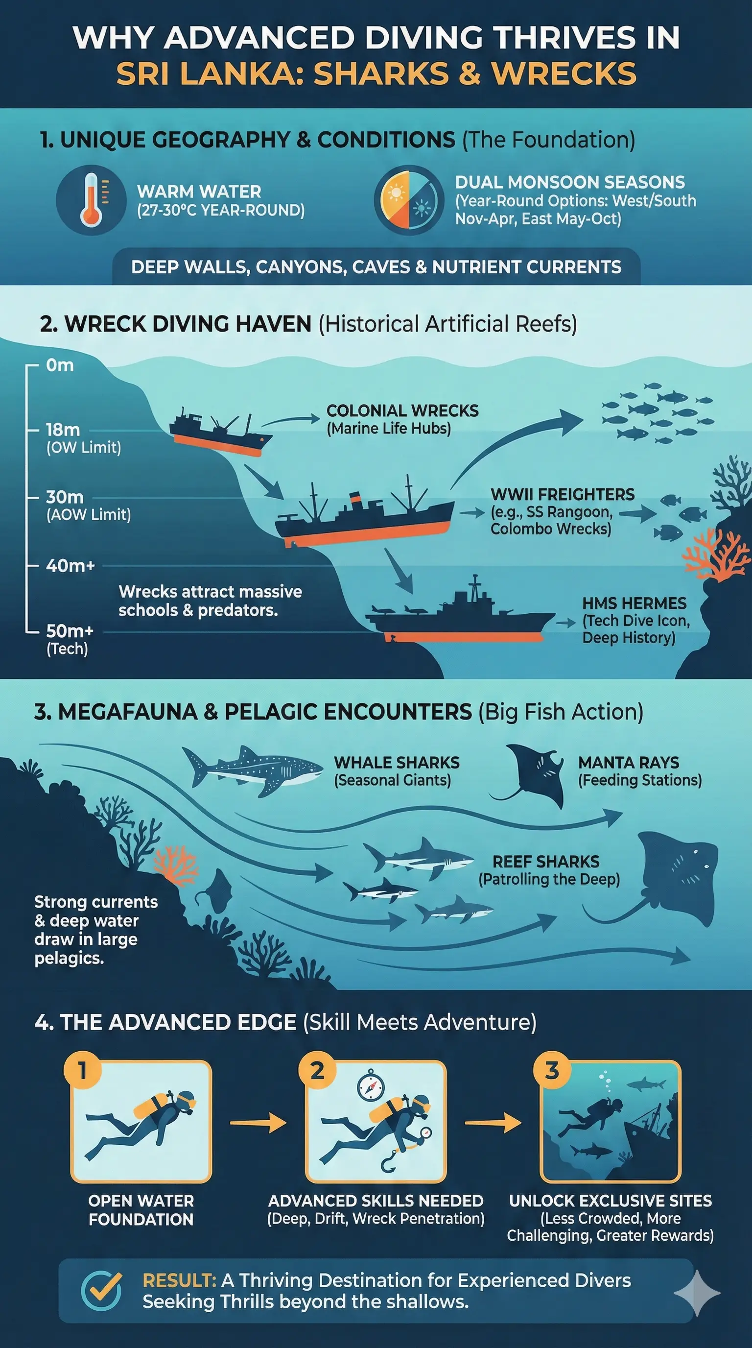 Infographic: Diving with Sharks and Wrecks: Advanced Diving in Sri Lanka — key facts and figures at a glance
