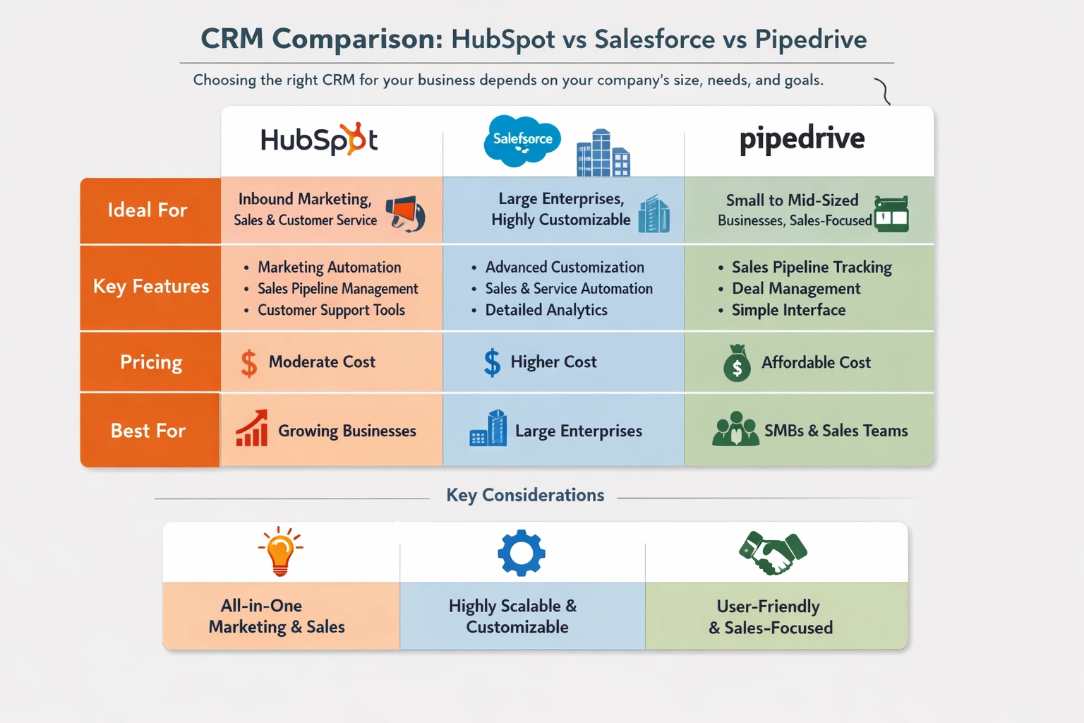 CRM Comparison: HubSpot vs Salesforce vs Pipedrive