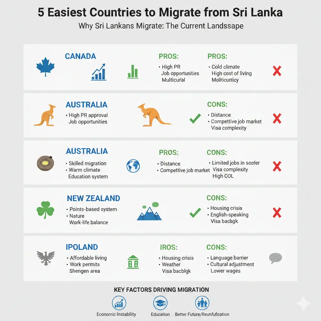 With our economy still recovering and job opportunities limited at home, many of us in Sri Lanka are eyeing migration as a smart move for better careers, higher salaries, and family stability. Our pas...