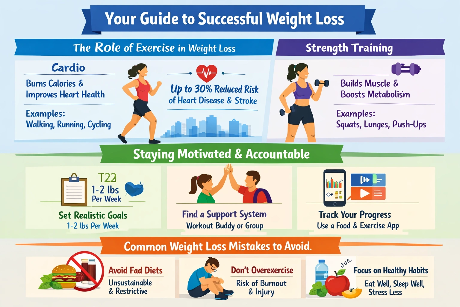 There are several common weight loss mistakes that can derail your efforts and prevent you from achieving lasting results. One of the most important things to avoid is fad diets, which are often restrictive and unsustainable in the long term. These diets might promise rapid weight loss, but they're often based on unrealistic expectations and can lead to nutrient deficiencies and other health problems. For example, a study published in the Journal of the Academy of Nutrition and Dietetics found that people who followed a fad diet were more likely to experience nutrient deficiencies and other health problems than those who followed a balanced and varied diet. Overexercising is also a common mistake that can prevent you from achieving lasting weight loss results. While regular exercise is essential for weight loss, overexercising can lead to burnout and injury, and can also cause you to lose muscle mass and slow down your metabolism. For instance, a study published in the Journal of Strength and Conditioning Research found that people who overexercised were more likely to experience overuse injuries and burnout than those who exercised at a moderate intensity. By finding a balance between exercise and rest, you can create a weight loss plan that's tailored to your needs and goals, and achieve lasting results that improve your overall health and wellbeing. Some examples of ways to avoid common weight loss mistakes include focusing on whole, unprocessed foods rather than relying on processed or packaged foods, drinking plenty of water and limiting your intake of sugary drinks, and getting enough sleep and managing stress. For example, you might start by replacing sugary drinks with water or unsweetened tea, or by incorporating stress-reducing activities like yoga or meditation into your daily routine. By avoiding common weight loss mistakes and focusing on sustainable lifestyle changes, you can create a weight loss plan that's tailored to your needs and goals, and achieve lasting results that improve your overall health and wellbeing.Maintaining Weight Loss Results