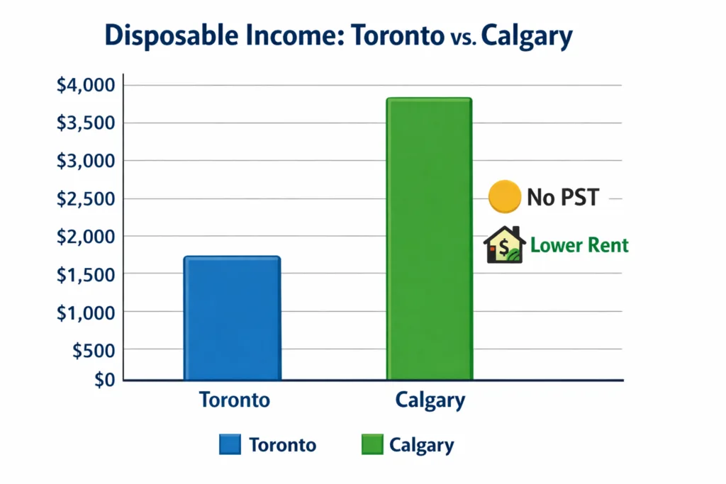 Let's talk numbers, because that is why you move here. Higher Salaries: Alberta consistently has the highest average weekly earnings in Canada. Lower Taxes: There is no Provincial Sales Tax (PST). You only pay the 5% federal tax on goods. In Ontario, you pay 13%. In Quebec, nearly 15%. This adds up every time you buy a laptop, a car, or groceries. Housing: You can still buy a nice detached house in Edmonton for $500,000 or in Calgary for $650,000. In Toronto, that same money gets you a 1-bedroom condo.