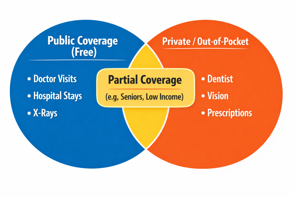 Once you have your health card, you might think you are set. You aren't. Canada’s public system generally stops at the neck and the ankles. Here is what you usually have to pay for yourself: