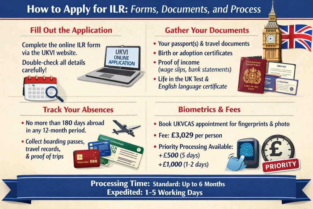 You’ll start by completing the appropriate online Indefinite Leave to Remain application form through UK Visas and Immigration (UKVI).[1] The form itself isn’t complicated, but accuracy is non-negotiable. Double-check every date, every address, every absence from the UK. I once worked with a client who listed a two-week holiday in 2023 but forgot to mention a three-day trip in 2022—it created unnecessary complications during processing.
