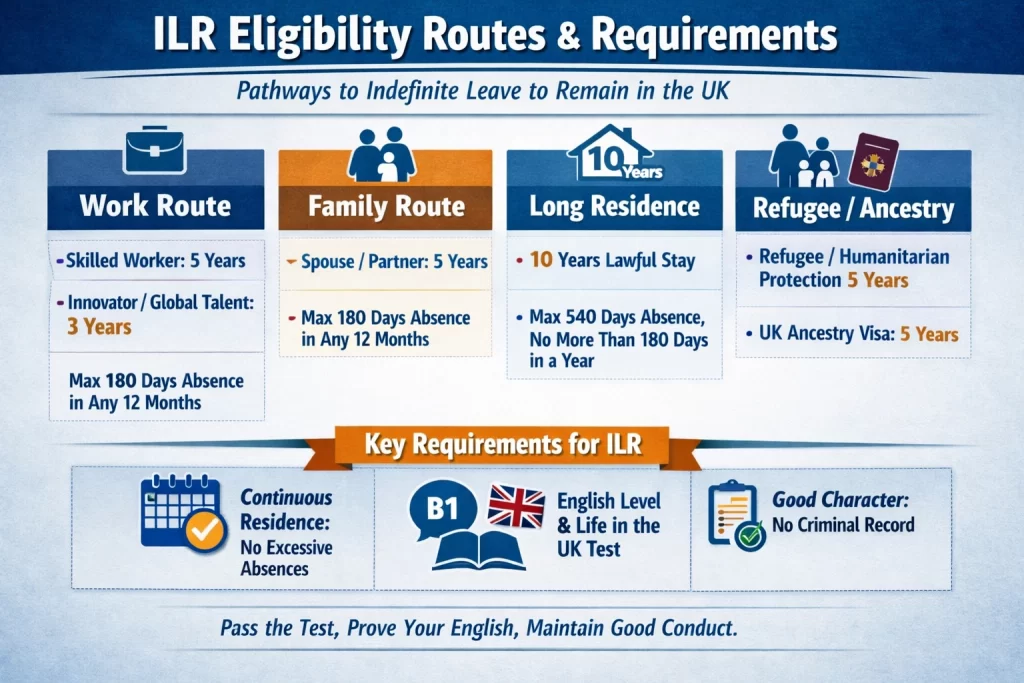 Now, you might be wondering which paths actually lead to ILR and what you need to tick off to succeed. From my 15 years guiding clients through UK immigration, I can tell you the main routes boil down to work, family, long residence, and special categories like refugees—each with precise qualifying periods, absence limits, and those evergreen requirements of good character, B1 English (or higher), and the Life in the UK test.[1][Research Findings]