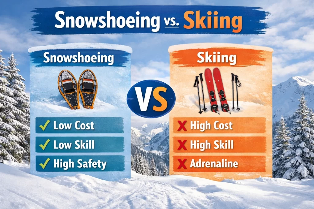 The learning curve is about five minutes. If you can walk, you can snowshoe. It is peaceful, great cardio, and lets you explore forests that look like Narnia in the winter.