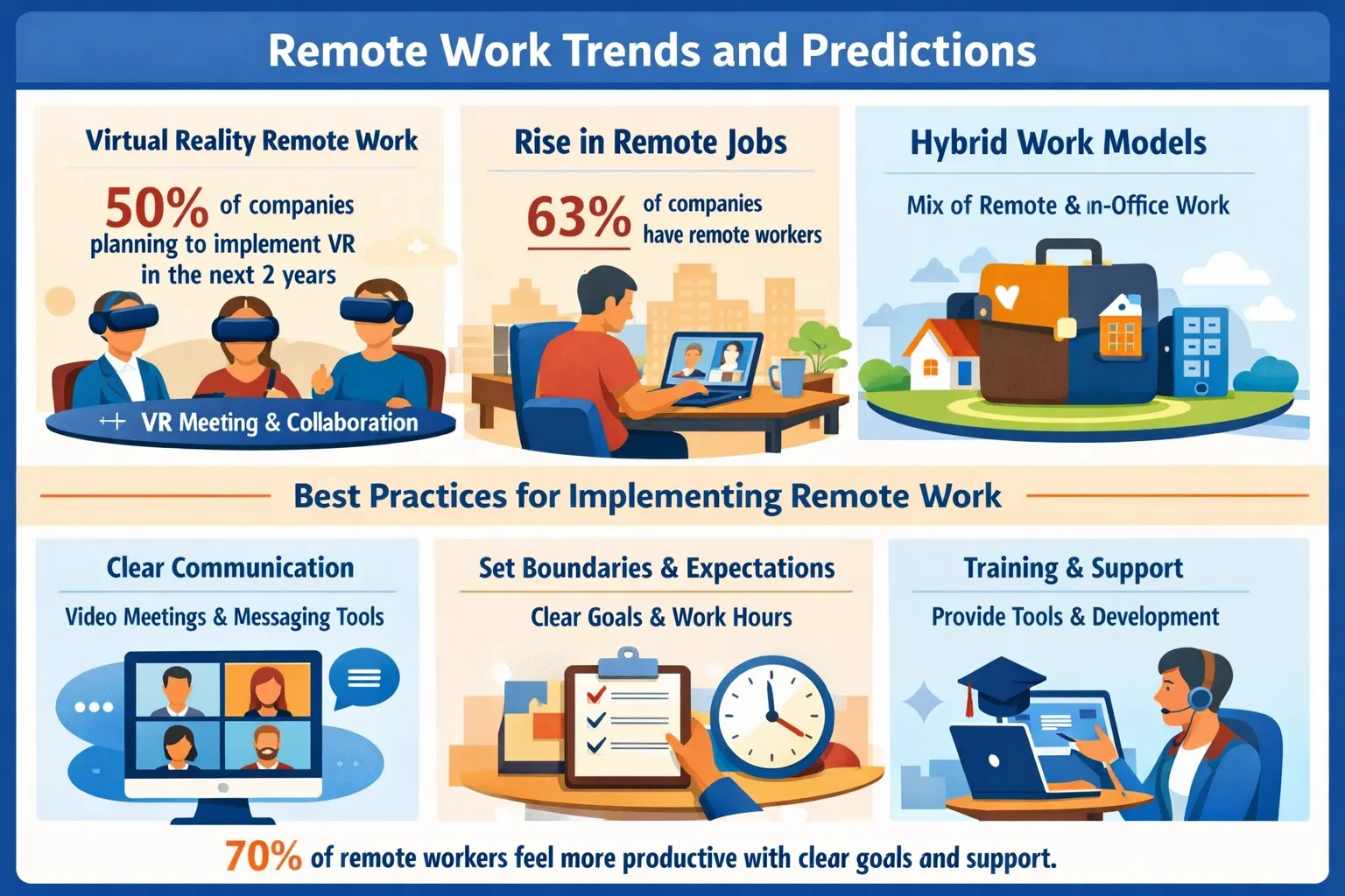 While remote work offers many benefits, it also presents several challenges. One of the most significant challenges is communication breakdowns, which can occur when team members are not able to communicate face-to-face. This can lead to misunderstandings and errors, which can be costly and time-consuming to correct. To overcome this challenge, companies can use video conferencing tools, such as Zoom or Skype, to facilitate face-to-face communication. Technical issues are another challenge of remote work. Without the support of an IT department, remote workers may experience technical difficulties, such as connectivity issues or software problems. To overcome this challenge, companies can provide remote workers with the necessary tools and support, such as VPN access and technical support hotlines. Social isolation is also a challenge of remote work, which can lead to feelings of loneliness and disconnection. To overcome this challenge, companies can encourage remote workers to connect with each other through virtual social events, such as virtual happy hours or team-building activities. For example, a study by Society for Human Resource Management found that 60% of remote workers reported feeling isolated, highlighting the importance of addressing this issue.Remote Work Trends and Predictions