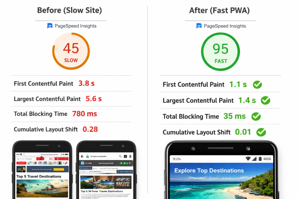 PWAs bridge websites and apps—installable, offline-capable and push-notification enabled without app store approval.digitalocean+1