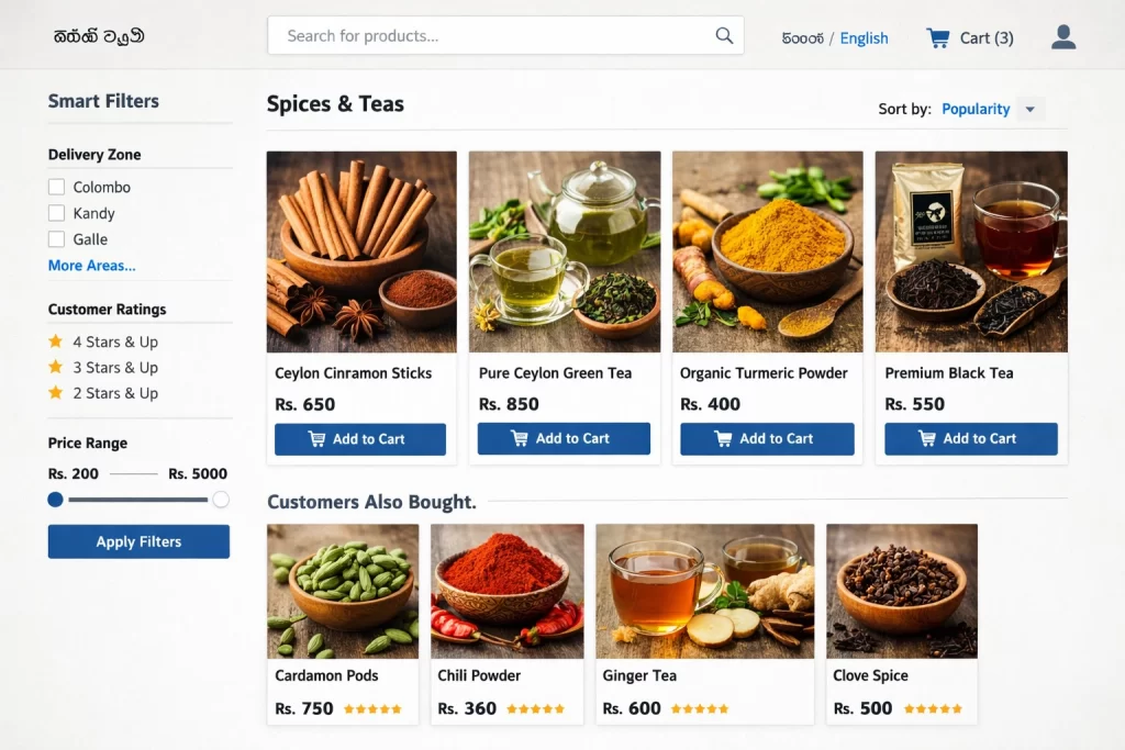 Sri Lankan shoppers expect Amazon-level discovery on local sites—AI-powered search, smart filters and personalised recommendations.