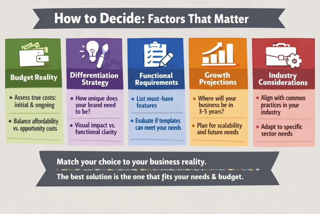 List the specific features and capabilities your site needs. Then honestly assess whether templates can provide those features effectively. Many template-based platforms offer extensive functionality through plugins and extensions. Custom development becomes more justified when you need something genuinely unusual or when integration requirements are complex.