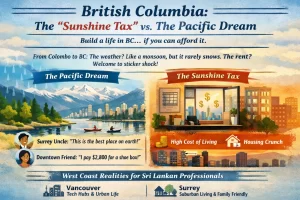 You will hear two things from the Sri Lankan community here. One uncle in Surrey will say, “This is the best place on earth, look at the mountains.” Another friend in downtown Vancouver will say, “I pay $2,800 for a shoe box.” Both are correct. BC offers a lifestyle that is unmatched in Canada, but it demands a different strategy than Toronto.