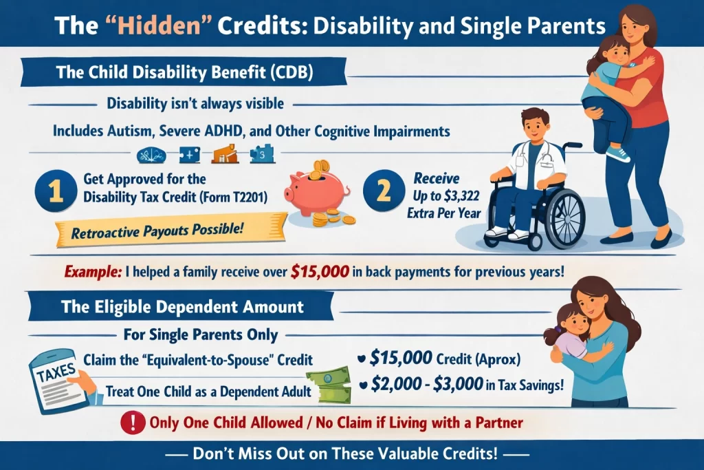 Some of the most valuable credits are the ones people assume don’t apply to them. The Child Disability Benefit (CDB) and the Eligible Dependent Amount are two areas where I consistently see families leaving thousands of dollars unclaimed.