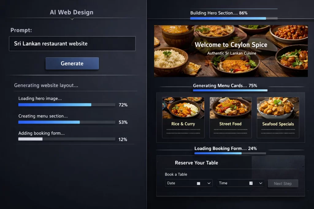 - Cultural context: AI generates generic “Asian restaurant” designs instead of authentic Sri Lankan rice & curry plating with hoppers and kottu visuals.daltoncraighead+1