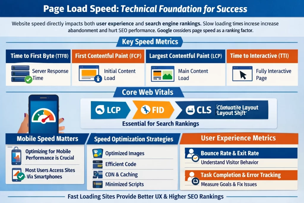 Website speed directly impacts both user experience and search engine rankings. Research consistently shows that slower loading times increase abandonment rates, with significant visitor loss occurring for each additional second of delay. Google explicitly includes page speed as a ranking factor, meaning slow sites suffer visibility penalties that compound direct user experience problems.